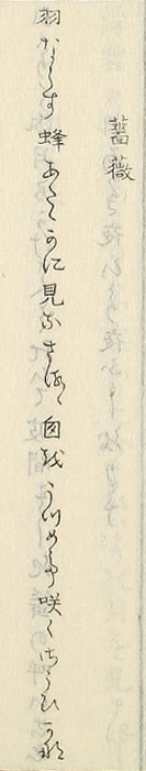 これは江戸末期の歌人橘曙覧(たちばなのあけみ)という人が歌ったもので、志濃夫廼舎歌集(しのぶのやかしゅう)という本の中にある「薔薇(そうび)」という歌です。