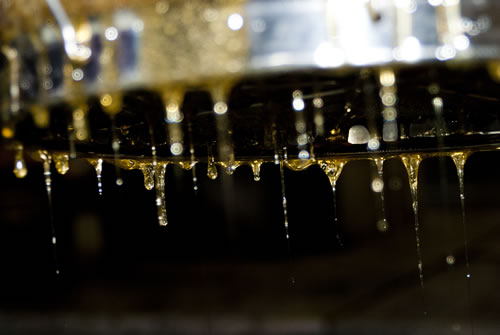 3.濾し器で濾過し、抽出時にまざった蜜ロウなどの余分なものを取り除きます。